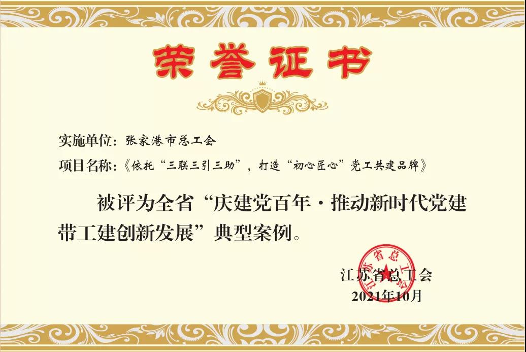 日前,“慶建黨百年·推動(dòng)新時(shí)代黨建帶工建創(chuàng)新發(fā)展”優(yōu)秀成果發(fā)布,我市總工會(huì)“依托‘三聯(lián)三引三助’打造‘初心匠心’黨工共建品牌”被評(píng)為江蘇省典型案例。